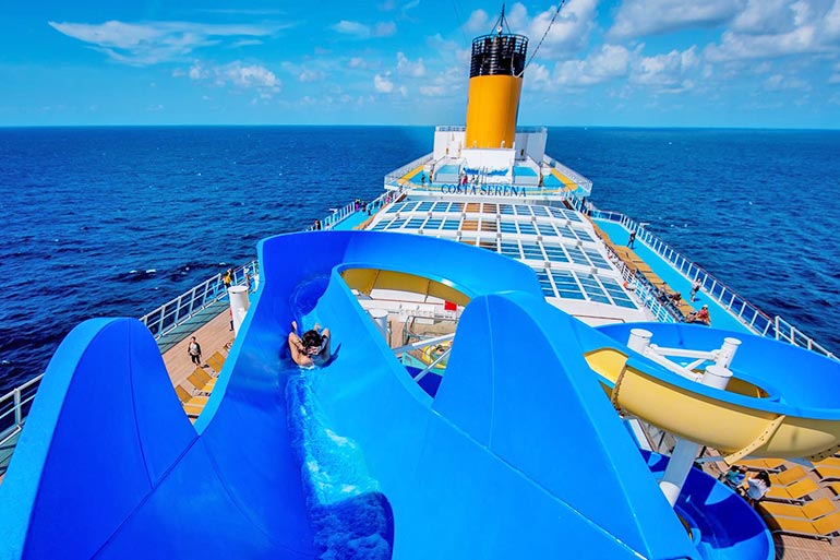 ⚓以古羅馬希臘神話為設計靈感,打造出被眾神之神宙斯、太陽神阿波羅、愛神邱比特等神話故事意象環繞的郵輪度假空間,宛如走進古羅馬神話世界裡。眾神之船—海上的古羅馬,與古羅馬希臘神話相遇於莎倫娜號上,邂逅一段純正濃烈的義式浪漫航程。