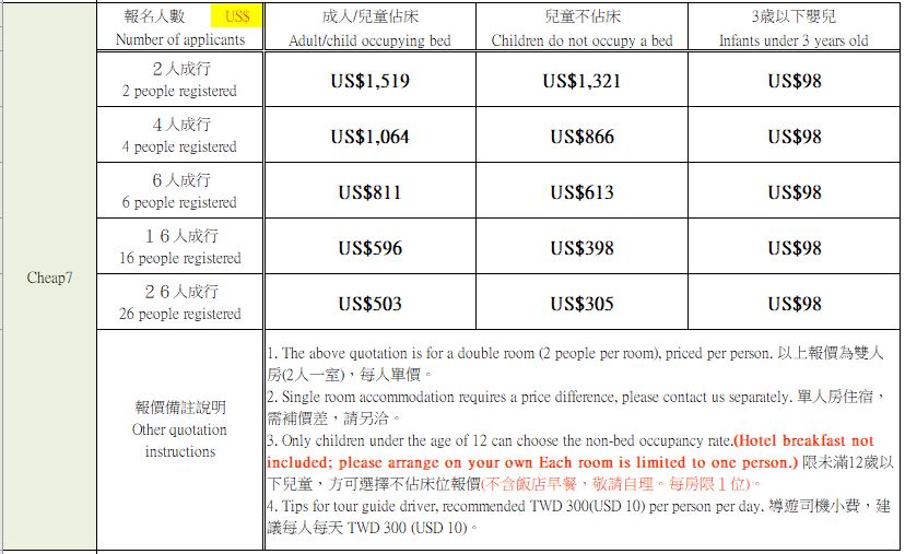 參團人數:嬰兒不計算在內,但必須佔座。報名時請注意!
